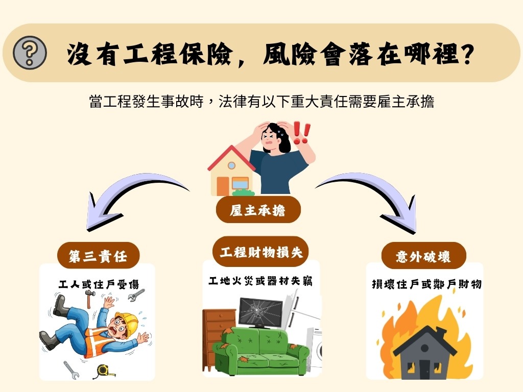這些問題,最後多半會回到屋主與施工方的協商,甚至進入法律程序。對屋主而言,省下的保險費,可能換來數倍甚至數十倍的風險成本。