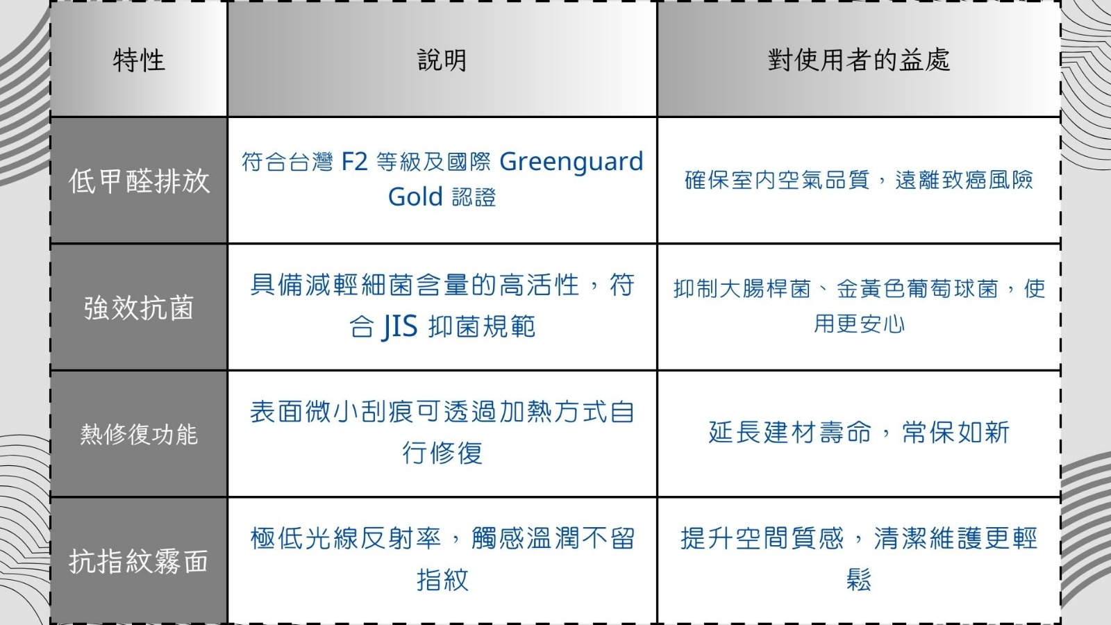 在現代室內裝修中,健康意識已成為消費者的首要考量。傳統建材中常見的甲醛(Formaldehyde)是世界衛生組織認定的致癌物質,長期吸入可能引發呼吸道疾病甚至更嚴重的健康問題。此外,頻繁接觸的桌面與櫃體表面,更是細菌滋生的溫床。因此,選擇具備低甲醛與抗菌特性的建材,已成為打造安心居家環境的關鍵。